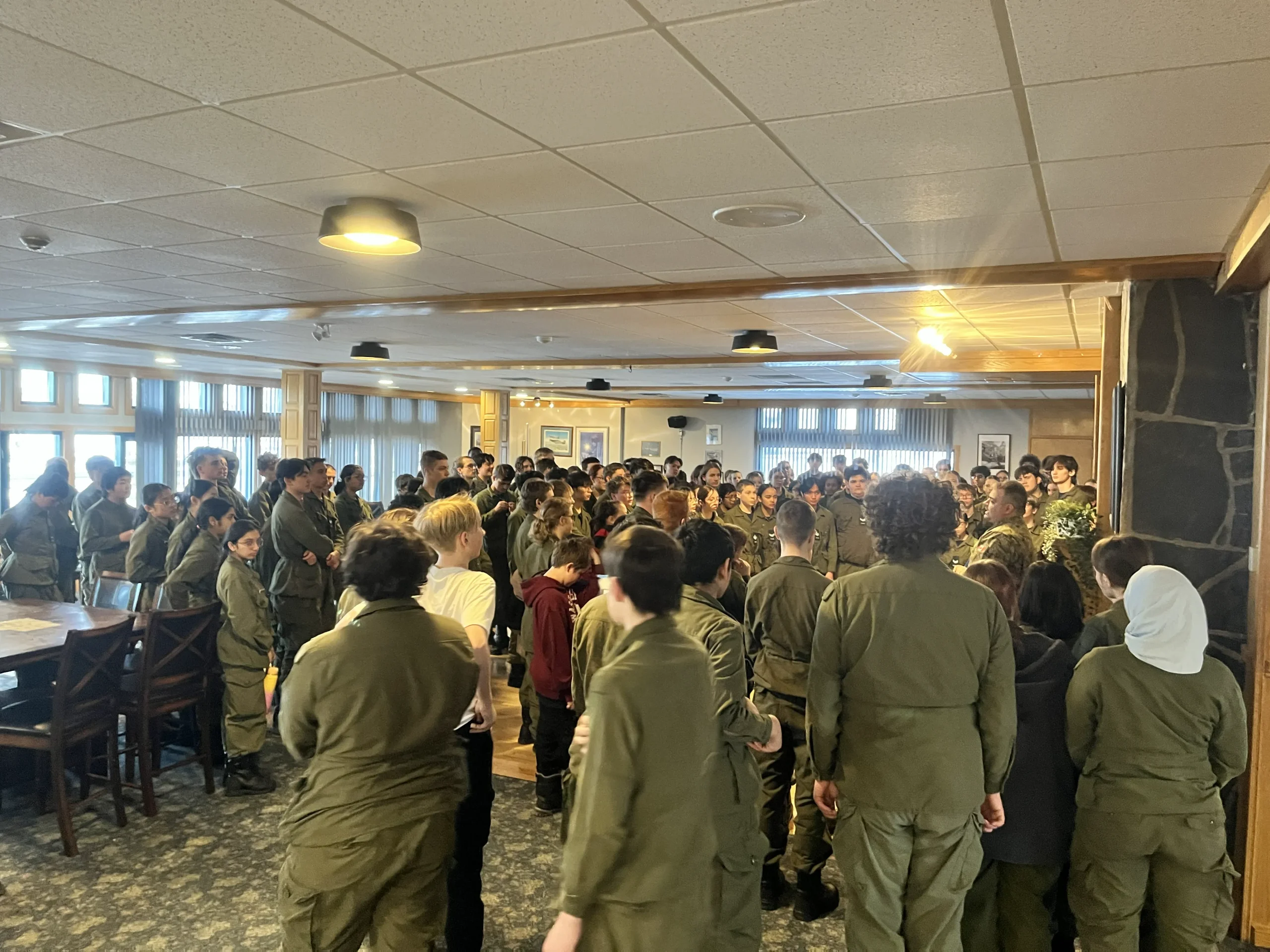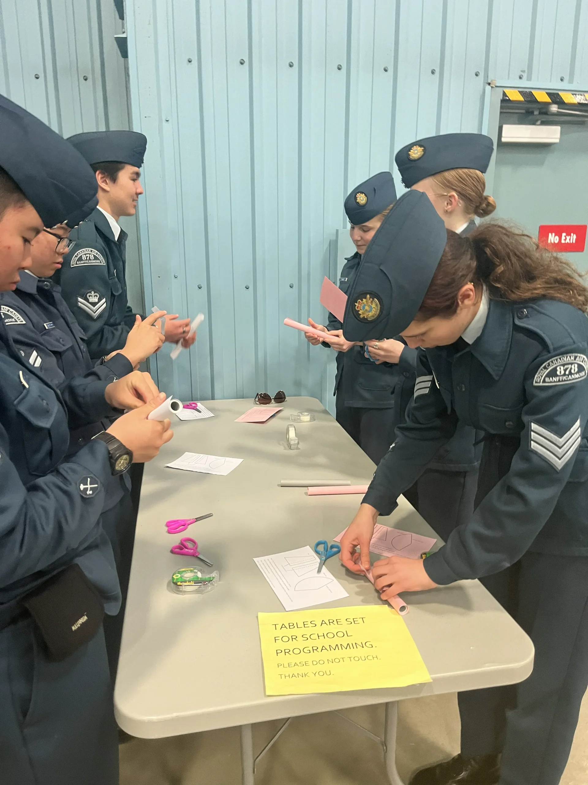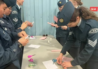 Cadets have the oppertunity throughout the winter to participate in Marksmanship practice firing .177 calabre air rifles and compete at a local level to obtain proficiency badges and the opportunity to compete within the region, provincially and nationally. The Town of Canmore and Canmore Fire Rescue generously share their space with 878 Squadrons to provide cadets with this oppertunity,